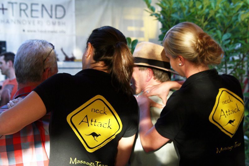 Ziehen Sie noch mehr Kunden und Interessenten zu Ihrem Messestand mit der professionellen Messe Massage von neckattack®. Unsere Masseure und Masseurinnen arbeiten direkt an Ihrem Stand, entspannen dort Ihr Personal und verwöhnen Ihre Kunden mit klassischer Massage oder unserer Spezialität, der Australischen Massage.