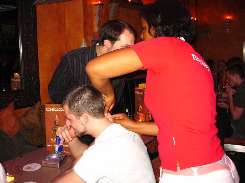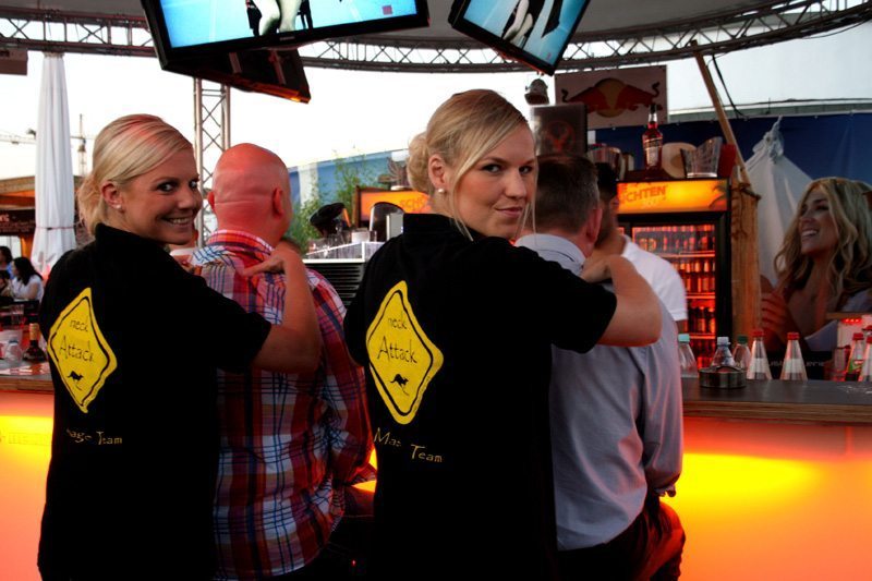 Unsere Massage-Promoter sind von Mittwoch bis Samstag ab 20 Uhr in den angesagtesten Clubs und Bars in acht Städten Deutschlands unterwegs und bieten die Australische Massage von neckattack® an. Direkt auf dem Barhocker oder in der Lounge genießen die Gäste diese entspannende und energetisierende Massage (5-10 Minuten, Schulter-/Nackenbereich, auf der Kleidung) und kommen natürlich mit den Masseuren ins Gespräch.