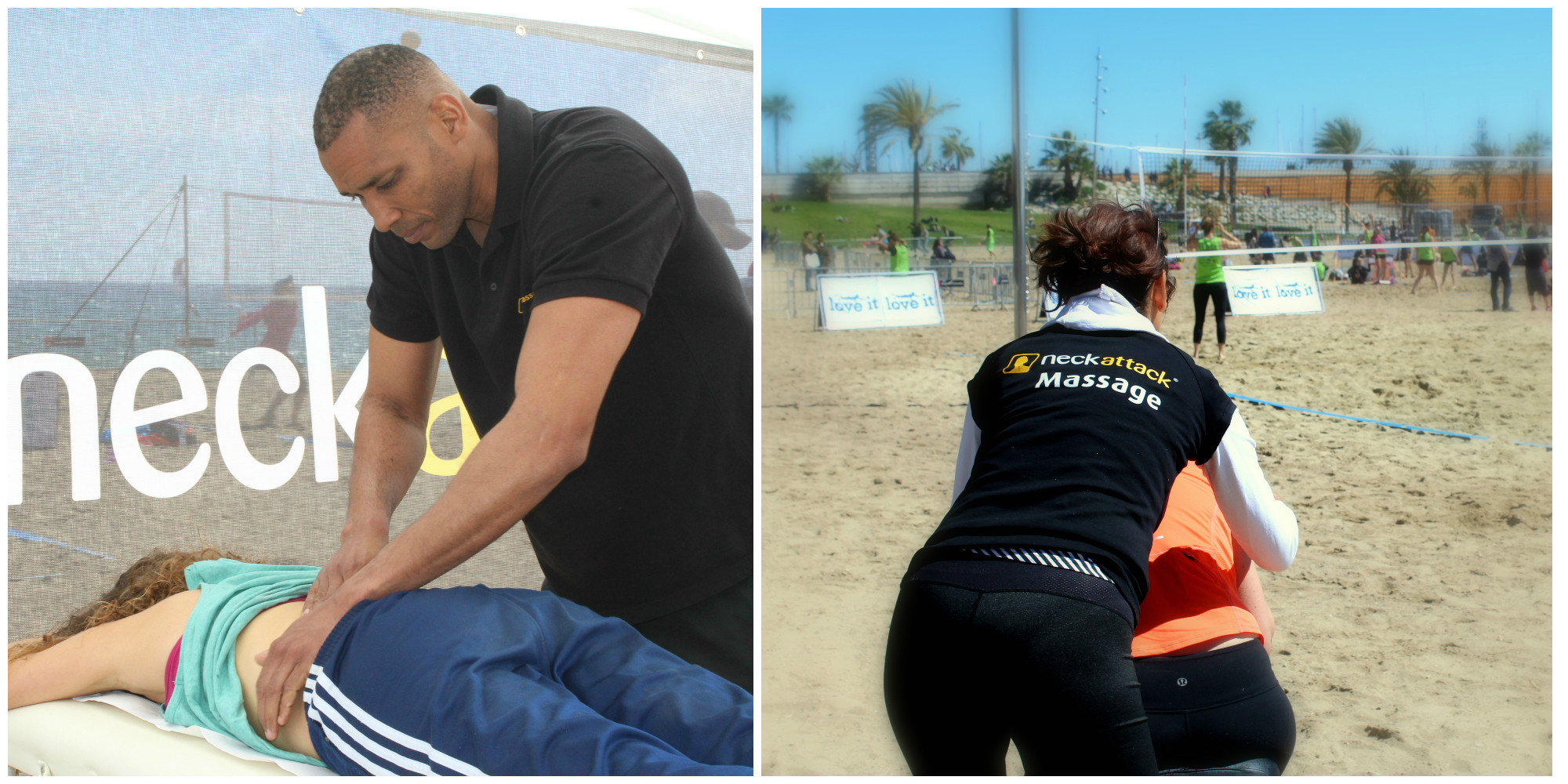 Sport und Massage passt übrigens super zusammen! Das Drachenbootrennen war nicht das erste Sportevent, auf dem wir den fleißigen Sportlern zu einer kleinen Auszeit und wohltuender Entspannung verholfen haben. Beim alljährlichen „LoveIt“ Beachvolleyball-Turnier in Barcelona beispielsweise, waren wir ein ganzes Wochenende mit drei Masseuren vor Ort und haben mobile Massage angeboten.